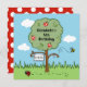 En söt inbjudan att fira en födelsedag. Kortet har en färgstark trädgårdsscen med ett äpple träd, en stötfångare som går runt och en skrapning av en skal av nyckelfåglar på marken.