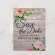 Modern Födelsedagsfest sparar datuminbjudan Postkortsmallar - Elegant skript med Rosa ros Flowers och String Ljus på Rustic Wood Background. En Perfekt för din stora dag. Alla textstorlekar i stil, färg, kan ändras för att passa dina behov!