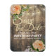Modern Födelsedagsfest Spara datum magneter-inbjudningsmallar - Elegant skript med persikoblommor och String Ljus på Rustic Wood Background. En Perfekt för din stora dag. Alla textstorlekar i stil, färg, kan ändras för att passa dina behov!
