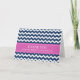 Födelsedagsfest tack för att du har kort i elegant smart fuchsia shock rosa, mörk navy blue and white roligt och avslappnad vintage chevron zigzags rand mönster, perfekt, födelsedagsfestens sätt att tacka gäster. Finns i många matchande födelsedagsprodukter.