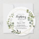 Den här geometriska tropiska kalligrafin födelsedagsfest inbjudan i guld är en perfekt för ett modernt födelsedagsfirande. Utformningen har handmålade vackra löv för grönt, som lägger till ett guld-geometriskt ram.