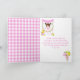 Denna söta och fantasifulla tack-kort visar en flicka med brunt hår och ljus hy vid ett rosélemonadstånd som är dekorerat med blommor och flaggor. I bakgrunden syns en blå himmel, solsken och fjärilar. Texten kombinerar dekorativa och sans-serif-teckensnitt för en stilren och modern look. Detta är perfekt för en sommarfödelsedagsfest.