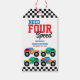 BEHÖVER FYRA HASTIGHETER MONSTER TRUCK FÖDELSEDAGSFIRANDE TEMAT. FÄRGGLADA LASTBILAR MED SVART OCH VIT GROOVY RUTIGT MÖNSTER RETRO STIL REDIGERBAR BARN FÖDELSEDAG.