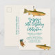 Födelsedagsinbjudan för vuxna män till en fiskare i alla åldrar. Fläckig öring och flugfiske design på ecru-papper med mörkblå-grön text. Större skrift högst upp kan anpassas för en överraskningsfest, eller så kan texten innehålla hans namn, till exempel “Grattis på 50-årsdagen Thomas”. Avsändaradressen kan läggas till en efter en på baksidan av inbjudningarna, eller köp postkorten tomma för handskrivna texter.