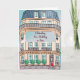 Födelsedagsfirande i Paris, Frankrike med byggnad i bakgrunden, en flicka i byggnad, med krukväxter och blå himmel med bakgrunden. Tack vare Kreativet Fabrica kan Hungryjpeg och Design Cuts för en del av inslag i designen. Orden på insidan kan ändras.