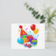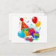 Ett sött lycklig födelsedag vykort kort designat med ballonger, hatt, ångbåtar och presenter