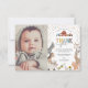 Tackkort för barns födelsedag med enkel vit bakgrund, konfetti, foto på barnet, söta gårdsdjur inklusive ko, get, gris, får, åsna, häst, kanin, anka och en tupp, och en tackmall som är lätt att anpassa.