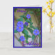 Ett vackert kort med gren i blåa blommor och texten Grattis på födelsedagen i blått och orange som alla ramades in i ett lämpligt färg. Inuti texten står det: "Jag hoppas att alla dina födelsedagdrömmar och önskemålens kom är sanna". Det är kostsamt med din egen text.