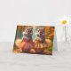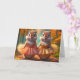 Cute Chipmunks med en ljus tutu på en träd-stump i en solbelyst skog med fallande höst löv för födelsedag. Text kan ändras.