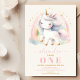 Låt magin från ditt lilla barns första stora milstolpe utspela sig med vår Unicorn 1st Birthday Invitation. Skräddarsydd med fantasifulla illustrationer och livfulla färger, sätter denna förtrollande inbjudan tonen för en fest fylld av glädje och förundran. Framsidan visar en charmig enhörningsunge omgiven av skimrande stjärnor, vilket skapar en oemotståndlig lockelse för dina gäster.