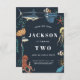 Denna födelsedagsinbjudan för barn under havet är perfekt för de som älskar havsdjur. Med en bläckfisk, maneter, drakfisk och mer, är detta akvarelltema för havet roligt och livfullt. Det blå färgschemat gör detta bra för både pojkar och flickors födelsedagsfester. Ett vackert nautiskt tema för att inbjuda gäster till era lilla enes födelsedagsfest.