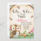 Cute Girl's uggla hade en andra födelsedagsinbjudan med ett uggla med blommigt krona, en fågel och ett träsegment. Denna design kan också användas i en annan ålder.