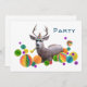 En hjort som bär en festhatt omgiven av färgglada festsmycken på denna roliga födelsedagsinbjudan. Anpassa genom att ändra texten och skicka ut till alla dina roliga vänner.
