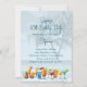 Födelsedagsinbjudningar för vuxna med tropiskt tema med palmer. En nedre kant med utsmyckade cocktails pryder framsidan med fyra mallar med blå text. Skrift används för festens titel och hedersgästens namn. Utskriven text är i styckeform för datum, tid, plats och all annan information som behövs. Erbjuds också som nedladdning för att dela online för att spara pengar och tid.