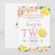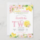 Fira din lilla enastående dag med denna charmiga lemon- och blomsterfödelsedagsinbjudan. Med akvarellcitroner och rosa blommor är denna glada design perfekt för ett sommarfesttema. Den lekfulla layouten framhäver ditt barns namn och ålder samtidigt som den ger alla evenemangsuppgifter i ett stilrent format. Perfekt för småbarnsfödelsedagar, denna inbjudan blandar levande citrusaccenter med ömtåliga blommor för att skapa en fräsch, festlig look som gästerna kommer att älska.