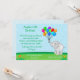 En förtjusande födelsedagsinbjudan för barn med söt elefant som håller en färgglad knippe ballonger i en utomhusmiljö med grönt gräs och blå himmel. Lämplig för både flickor och pojkar, och lätt att anpassa med dina födelsedagsdetaljer. Alla inbjudningar kommer komplett med kuvert. Grafik©http://www.delightful-doodles.com/