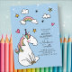 Födelsedagsinbjudan med enhörning, regnbåge och st inbjudan vykort