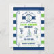 Ett ankare, fiskarrep, marinblå och gröna ränder, fisk, segelbåt och sniglar fullbordar denna roliga nautiskt tema inbjudan. Anpassa med din egen text. Perfekt för evenemang vid havet, sjön eller strandfester. Originalillustration av pj_design.