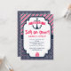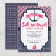 Födelsedagsinbjudan i rosa och marinblå med ett nautiskt tema.