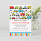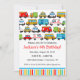 Födelsedagsinbjudan med transporttema med massor av olika bilar och fordon