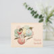 Bilden på denna inbjudan är anpassad från ett gammalt vykort. den visar en ung flicka som svävar på 7 ballonger. Meddelandet kan anpassas liksom åldern på ballongen.