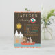 Fiskebirthday-inbjudningar med söta skogsdjur som fiskar i en båt mot en bakgrund av en bergssjö. Dessa fiskeinbjudningar för valfritt antal kan enkelt anpassas för ditt evenemang genom att helt enkelt lägga till dina uppgifter.