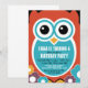 Födelsedagsinbjudningskort för barn med söt tecknad uggla och blomsterdekoration. Du kan också anpassa texten för andra tillfällen som brudshower, bröllopsinbjudningar, save the date eller baby shower-inbjudningar.