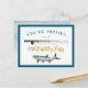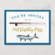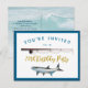 Födelsedagsinbjudningskort med saltvattenfisketema, för en vuxen man. Denna prisvärda inbjudan är perfekt för att fira en stor födelsedag för pappa, farfar eller någon fiskare. Vita kort har blå och guldbokstäver och är dekorerade med en fiskespö och bild på en tarponfisk. På baksidan kan du anpassa festinformationen i styckeform över ett mönster av simmande fiskar på ljusgrått.