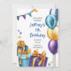 Födelsedagsinvasion med ballonger och presentinbju inbjudningar