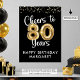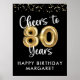 Fira en 80-årsdag med ett välkomsttecken som poster utskrift med titeln CHEERS TILL 80 ÅR med faux metallic guld ballong-nummer och modern skripttypografi, konetti och ditt anpassningsbar-meddelande i ditt val av bakgrund färg (i svart). ALTERNATIV: Provet visas i en 18x24-tums storlek på Value-Papper (projektionsyta). Andra utskriftsstorlekar av standardtyp och anpassningsbar, papper kvalitet och framtagning, Snabb digital nedladdningsfil för lokal utskrift eller överföring av designen till ett skum-, banderoll-, arbetsyta eller andra produktalternativ finns på beställningssidan. ÄNDRA TIPS: Välj Anpassningsbar Storlek för jämna gräns genom att ändra höjd och bredd proportionellt efter att du har klickat på ikonen UNLOCK (liknar en kedjelänk). ASSISTANS: Om du vill ha hjälp med designändringar eller anpassning, ändra storlek på eller överföra designen i färg, kontaktar du designern INNAN ORDERING sker via Chattan Zazzle MESSAGE eller e-post makeitaboutyoustore@gmail.com.