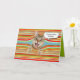 Grattis på födelsedagen tabby katt på färglös, mjuk, strimlad bakgrund.