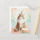 Detta fantasifulla postkort visar en bedårande luddig katt som bär en färgrik partajhatt och sitter stolt bredvid en födelsedagstårta med brinnande ljus. Omgiven av pastellfärgade konfetti är denna design perfekt för kattälskare, vänner och familj som uppskattar ett roligt och charmerande sätt att fira.
