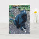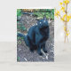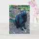 Arg är den svarta katten som bor bredvid min syster. En opportunist, han stannar vid för att behandla, men också för kärlek. I det här fotot sitter han i trädgården och tittar upp på en intressant fågel. Under och omkring honom är brunmage, med några döda, ljusbrunt bambu löv. I den övre delen finns det en del grönt löv med ett litet streck, och på dem står ord, "Arg Says" i vit text, med en fortsättning på hans meddelande på kortets insida. Args ljusa grönt ögon står ut i hans svarta ansikte. Han petar och, kan jag tillägga, är så mjuk som han ser ut! Copyright Gail Storrs 2011