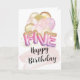 Utskrivbart kort med rosa lila och guld ballonger för 5-årsdag, regnbågsfödelsedagskort