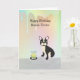 Födelsedagskort för en Boston Terrier-Hund, med illustration av en Boston Terrier, en designer-bakgrund med färgutstrykning, en liten cupkaka och en hund. Tack vare Hungryjpeg för en del av inslag i designen.
