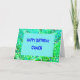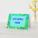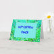 Det här är ett blått kort med grönt som har en kvadrat i mitten av designen med ord "Grattis på födelsedagen Coach" i mitten med ett digitalt spektrum runt fyrkanten.