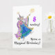 En trollkarl med en magisk födelsedag för en 8-åring. Blanka för ditt eget meddelande. Handmålad i vattenfärg och bläck av Judy Adamson (helikettle). Se även matchande T-shirt.
