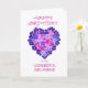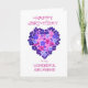 Ett söt- och romantiskt födelsedagskort för en flickvän, med ett hjärta av rosa och blåa blommor, från ett handmålat pappert kollage av Judy Adamson. Om du vill att texten på framsidan ska ändras på något sätt (t.ex. en annan ålder, person eller språk), kontakta mig genom min affär och jag är lycklig för att göra det rakt bort.