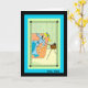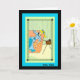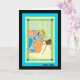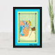 Det här söta kortet har en ung dam i hand plockade som pratar i en traditionell mobil inkopplad i väggen. Hon ljuger på en soffa som är klädd i en rock med rufflar och har en blond ponny svan.