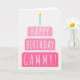 Födelsedagskort för Gammy. Om du kallar din mormor Gammy i stället för mormor, är det här födelsedagskortet perfekt för henne. Ditt spel kommer också att ge kärlek det här födelsedagskortets gradient ombre rosa design med en födelsedagskalas som säger "Grattis på födelsedagen Gammy!"! Gör det här anpassadet! Klicka på "Redigera design", "Inside Grund/Höger: Text & Bilder", "Text" och "Lägg till text" för att skriva din egen anpassningsbar, personlig meddelande till Gammy inuti!