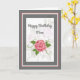 Födelsekort för Morsa med bakgrund av faded ro, för effekter, och söt rosa ros mot bakgrunden. Gräns och skrivningen är ett medelstort grått. Tack vare Hungryjpeg för en del av inslag i designen.