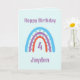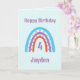 Boho Rainbow card från födelsedagen och namn och en vers inuti kan vara personlig genom att klicka på knappen 'personalize this template' (anpassa mallen). Cute card i Red lilac och Blue på en ljusblå bakgrund.