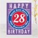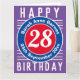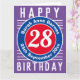 Grattis på födelsedagen-kort. Ljusa färger och djärv design. Numrerat födelsedagskort. 28 år gammal.