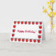 Grattis på födelsedagen på ett vitt kort land stil med ett gräns av röda äpplen. Trädskärmsdesign och vattenfärgseffekt av Indie Artist WindyDesign.