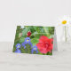 En söt familj av blå fåglar mitt i en vacker trädgård med växter och blommor. Kom precis flygande för att önska dig en 'grattis på födelsedagen'. Anpassa efter eget tycke.