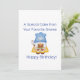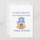 Kort med din Favorittomte som håller en speciell tårta med ett Glad födelsedag önskemål.
