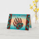 Personalisera detta unika "en av en sort" födelsedagskort med tribal björnklövar! Det har en indiansk tribal björnklövar på en turkos och orange solnedgång bakgrund omgiven av sydvästliga ramar i turkos, orange och svart! "Grattis på 50-årsdagen"! Detta är en originaldesign av konstnären Kerry Miller.