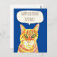 Sött röd katt vykort att skicka som en födelsedags hälsning till en älskad en. Personifiera för att säga vad du vill.