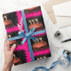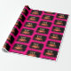 En bild av en Papper av fågeldagskaka som är klar och färglös. Med en Rosa ram runt en kummel med tre flamljus. Det är på Wrapping PAPPER.