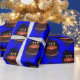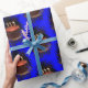 En bild av en Papper av fågeldagskaka som är klar och färglös. Med en blå ram runt en kummel med tre flammande ljus. Det är på Wrapping PAPPER.